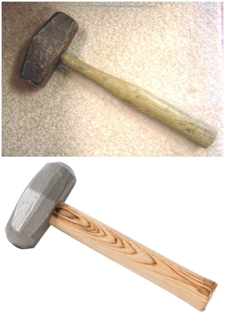 Drilling hammers became standard tools of the granite industry, railroad engineers, and early American stoneworkers. These heavy, smooth-faced hammers were simple, durable, and dependable. Forged from American steel and seated on a stout wooden handle.