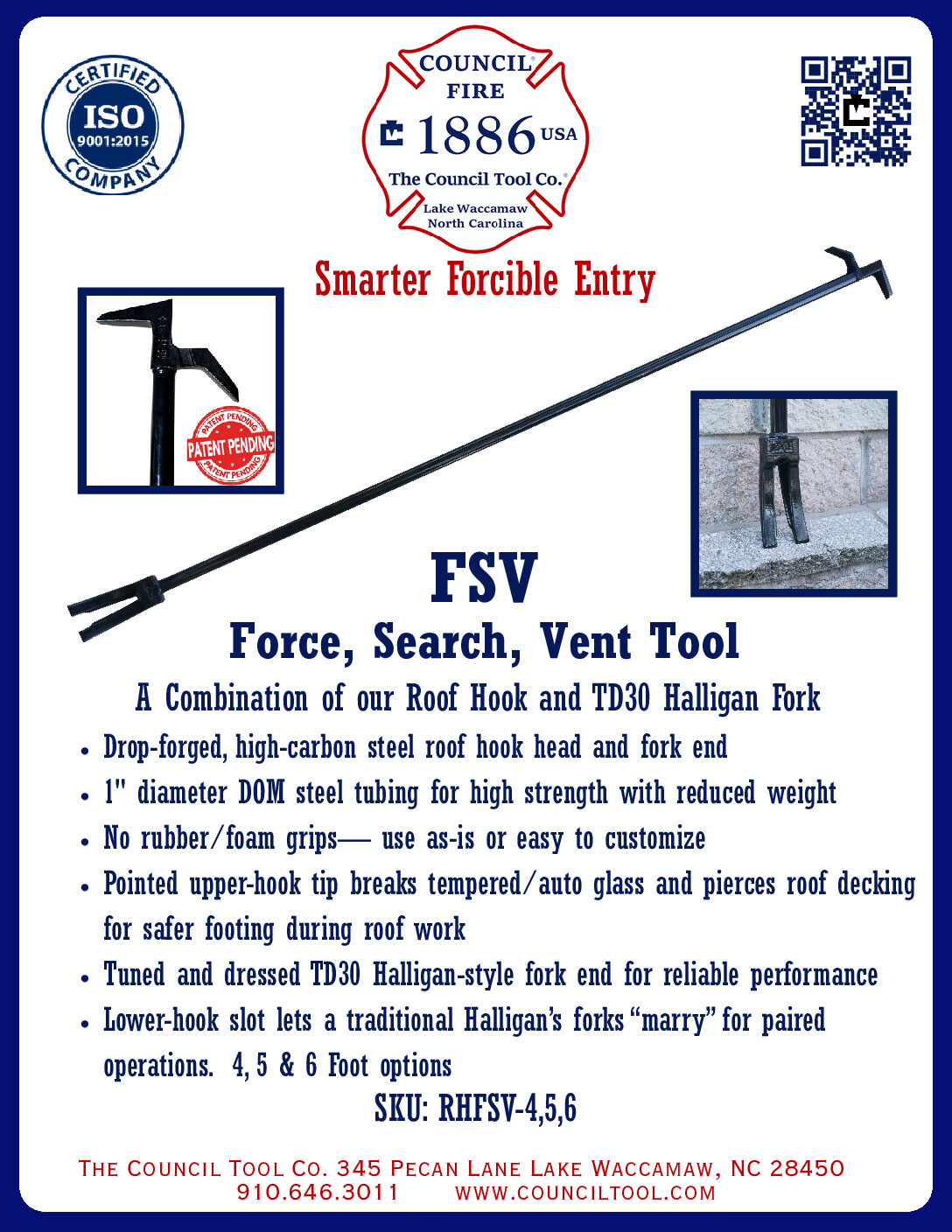 SKU: RHFSV-44 Ft FSV stands for “Force, Search, Vent” and is a combination between our NY style Roof Hook and our TD30 Halligan.